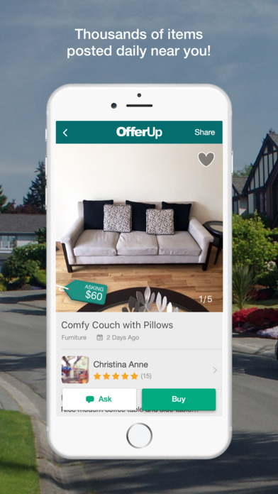 OfferUp это доска объявлений, только с аукционами. Приложение позволяет легко покупать и продавать товары.