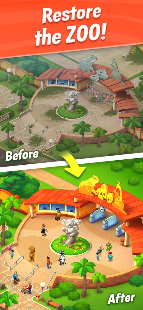 Это уже знакомые нам по Homescapes и Gardenscapes «три в ряд», только в этот раз про зоопарк. Игроки могут развивать свой парк, получать новых животных и аттракционы.