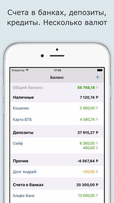 Доступна на Windows, а также в мобильных версиях – на iOS и Android. Фишка этой программы – возможность отслеживать свои кредиты и деньги, отданные в долг.