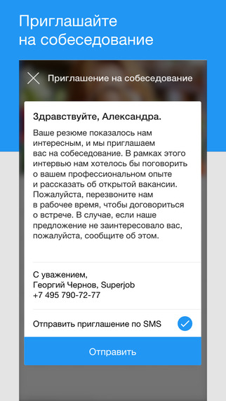Компания Superjob представила первое в России мобильное приложение для поиска сотрудников. Проводить быстрый поиск среди 15 миллионов резюме, открывать контакты и приглашать на собеседования работодатели теперь смогут на экране смартфона или планшета.