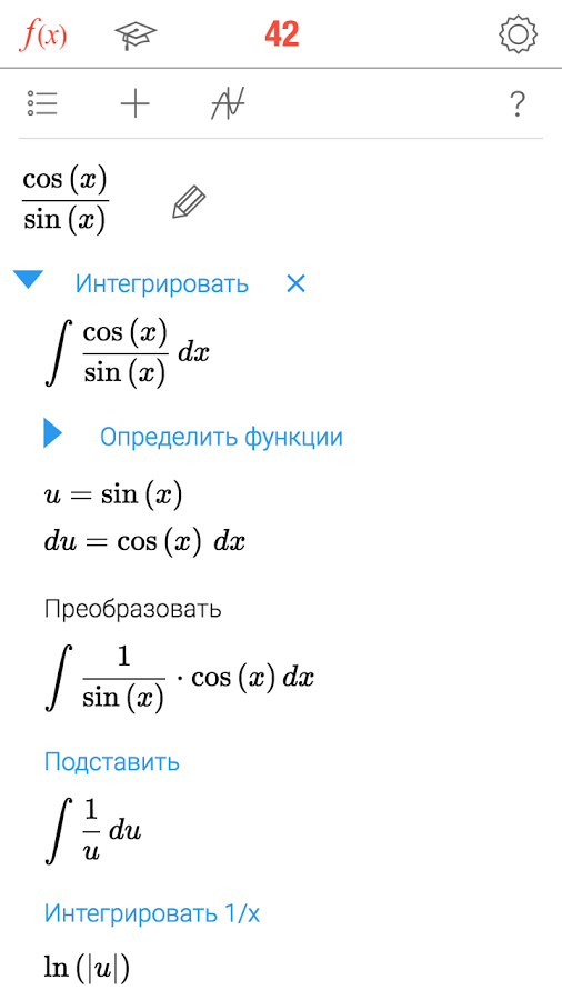 Инновационное приложение MATH 42 — более чем 2 200 000 миллиона скачиваний на iOS — теперь доступно на Android. Приложение-репетитор MATH 42 сначала предлагает способы решения, затем решает пример шаг за шагом, строит интерактивный график и объясняет математическое понятие, если вы забыли его. Для закрепления, упражнения и тестирования имеется раздел тренировки и теста.