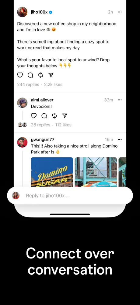 «Threads — это место, где сообщества собираются вместе, чтобы обсудить все — от тем, которые волнуют вас сегодня, до того, что будет в тренде завтра», — говорится в описании App Store. «Что бы вас ни интересовало, вы можете следить и общаться напрямую с вашими любимыми авторами и другими людьми, которые любят то же самое — или создать свою собственную лояльную аудиторию, чтобы делиться своими идеями, мнениями и творчеством со всем миром».