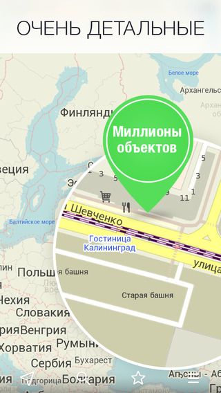Помимо улиц с номерами домов, MAPS.ME поможет найти все, что может понадобиться в незнакомом месте – от банкоматов, парковок и магазинов до ресторанов, музеев и достопримечательностей. Благодаря тому, что при составлении карт MAPS.ME используются данные, собранные участниками сообщества OpenStreetMap, на них можно найти такие небольшие, но иногда необходимые объекты как скамейки, тропинки и питьевые фонтанчики.