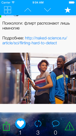 Удобное и красивое приложение для чтения собственной ленты новостей. Яркий и приятный интерфейс с плавными переходами к постам. Два режима просмотра: по одной записи в окне с использованием стрелок для перехода к следующей или предыдущей или вертикальный скролл ленты. Можно переходить к постам одной группы. Записи можно лайкать, шарить в любой другой социальной сети, добавлять в избранное, копировать ссылки на них и жаловаться. Оставлять комментарии и делать репосты пока нельзя. Из минусов – необходимость составлять список групп, чьи обновления вы хотите отслеживать с помощью приложения.
