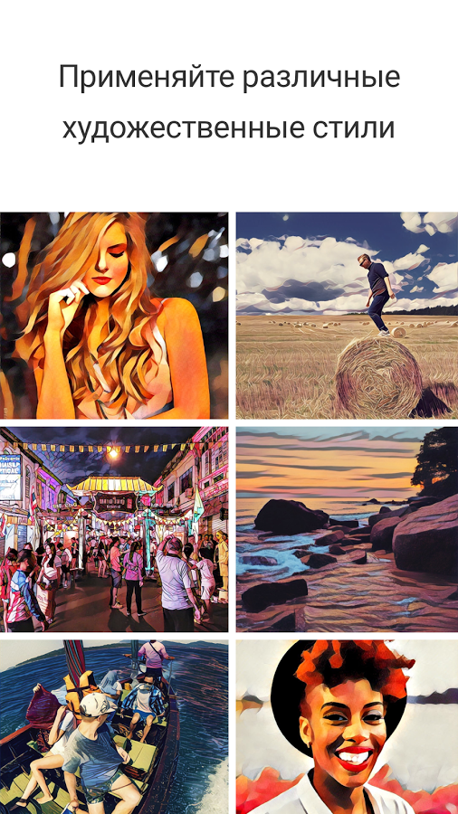 Prisma превращает ваши фотографии в произведения искусства, используя стили популярных художников: Ван Гога, Пикассо, Левитана, а также известных узоров и орнаментов. Уникальное сочетание нейронных сетей и искусственного интеллекта превращает ваши памятные моменты в настоящие шедевры.