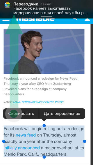 - Перевод выделенного текста в любой программе, установленной на iPhone, iPad или iPod touch, без переключения между приложениями; озвучка перевода;