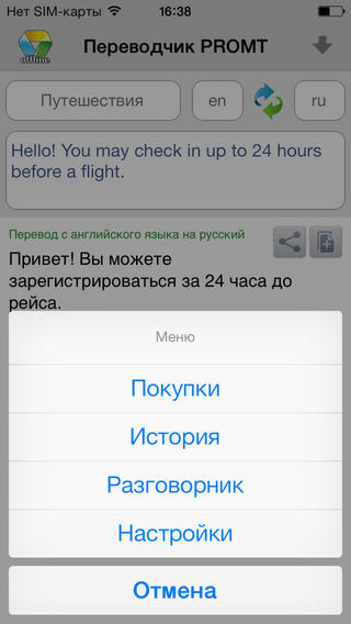Компания PROMT выпустила новую версию мобильного переводчика PROMT Offline для iOS. В новой редакции приложения пользователи получают возможность приобрести дополнительные офлайновые языковые пакеты: немецкий, французский, испанский и португальский. Пакет включает в себя три компонента — переводчик текстов, разговорник и словарь, каждый из которых можно устанавливать отдельно.