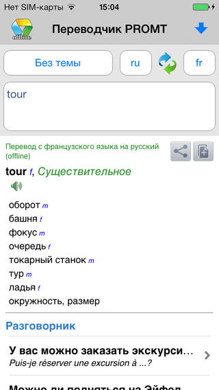 Приложение PROMT Offline – уникальный языковой инструмент для пользователей iPhone, iPad и iPod touch. В деловой поездке или на отдыхе, дома или за границей, программа станет незаменимым помощником для тех, кто изучает иностранные языки, активно путешествует, общается с друзьями и деловыми партнерами или интересуется культурой других стран. C PROMT offline можно читать статьи в Safari, документы в Pages, Evernote, AdobeReader, книги в iBooks – достаточно выделить слово или текст в любом приложении на устройстве и перевод появится во всплывающем окне.