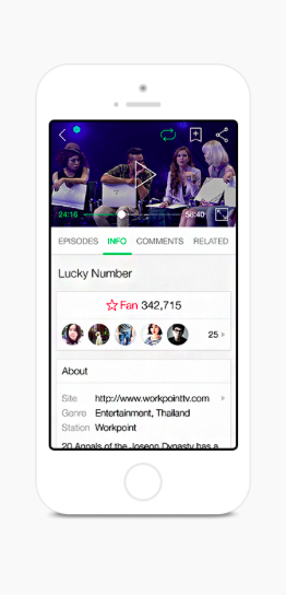 Line TV интегрирован с мессенджером. Например, пользователи могут легко обмениваться контентом с друзьями через приложение. Видео содержат информацию об актерах и быстрые ссылки для поиска и подписки на их официальные аккаунты в Line.