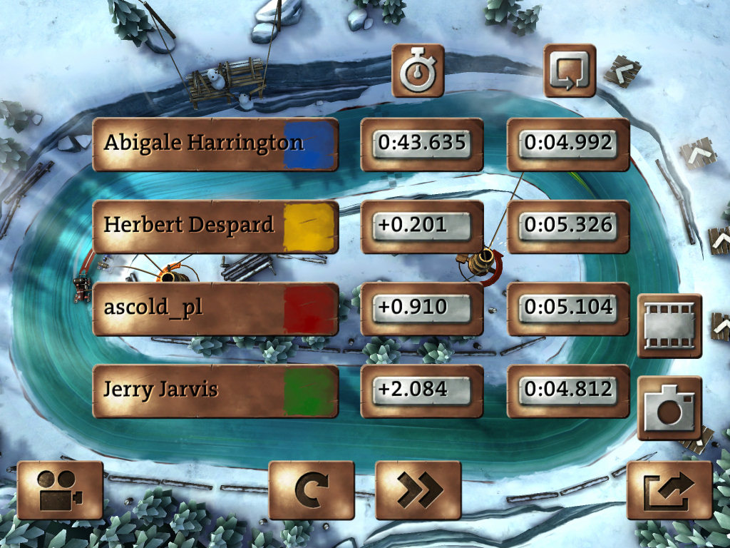 Во время каждого из 64 скоростных заездов, представленных в игре, нам предлагается выполнить различные миссии – проехать круг быстрее определенного времени, обогнать всех соперников в гонке или собрать разбросанные гайки. Кроме одиночного режима карьеры предусмотрено также два вида мультиплеера. Благодаря последнему у нас появляется возможность не только сыграть с реальными игроками со всего мира, но и попробовать свои силы с друзьями или родными на одном устройстве! В последнем случае каждый участник получает в свое распоряжение отдельный угол игрового экрана, откуда и управляет санями.