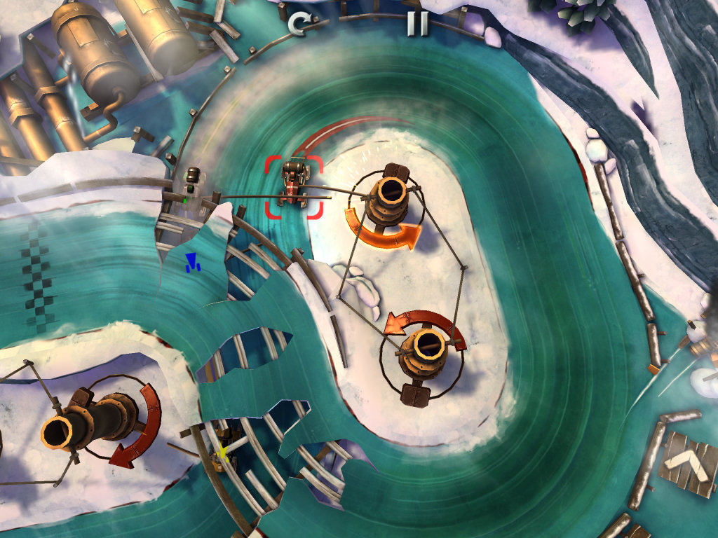Игровая вселенная Slingshot Racing отрисована в стиле стимпанка, а разъезжать нам предстоит на забавных санях, для которых разработчики создали симпатичные ледовые трассы. Самое же интересное в игре – это революционное управление, которое не предусматривает торможение, а проходить повороты нужно с помощью «подручного оборудования» – стоящих поблизости башенок, за которые надо зацепиться специальным гарпуном. Будьте осторожны: как только понимаешь механизм прохождения трассы, игрушка настолько затягивает, что оторваться от нее очень сложно.