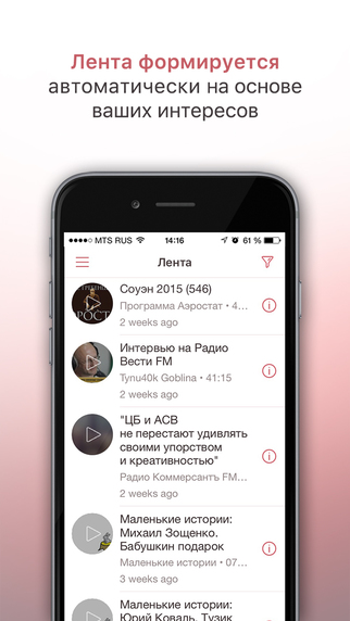 Таким образом, вы формируете свою ленту прослушивания и все, что вам надо делать дальше – слушать ее и обучать свои вкусам. По результатам такого “обучения” вам будут предлагать новые источники, которых нет в вашей ленте, но которые вещают по схожим тематикам.
