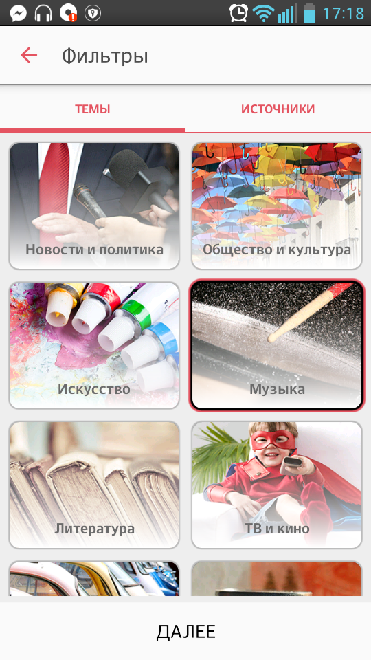 С чего начать работу с SoundStream? После входа на главном экране вам надо выбрать интересующие вас темы. Всего их несколько десятков.
