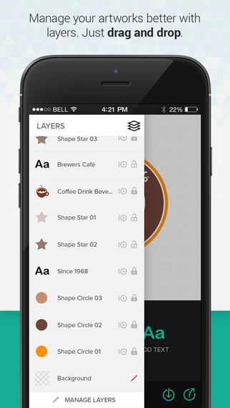 Приложение очень простое в использовании и действительно эффективное. В нем можно расположить текст дугой для круглых логотипов, а также управлять слоями. В Logo Foundry встроена функция поиска графических элементов, и вы сможете изменять размер всего — от текста до законченного продукта.