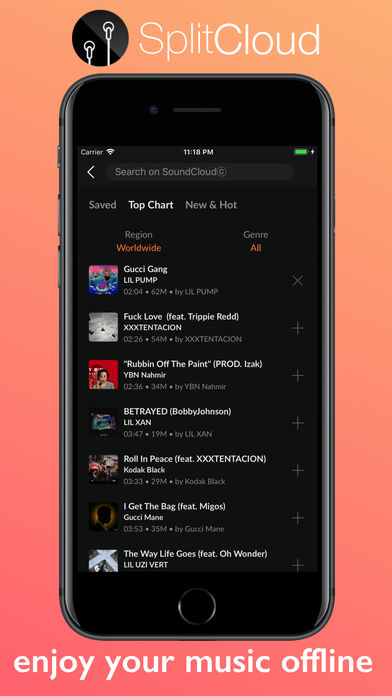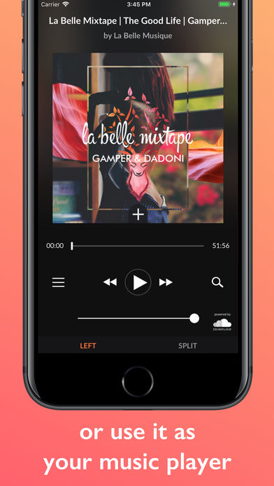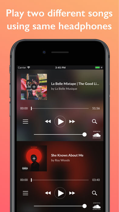 SplitCloud позволяет искать треки в SoundCloud, составлять два независимых плейлиста, воспроизводить музыку в офлайне, отдельно настраивать громкость для левого и правого наушника, наблюдать за чартами и, конечно, пользоваться плеером в одиночку.
