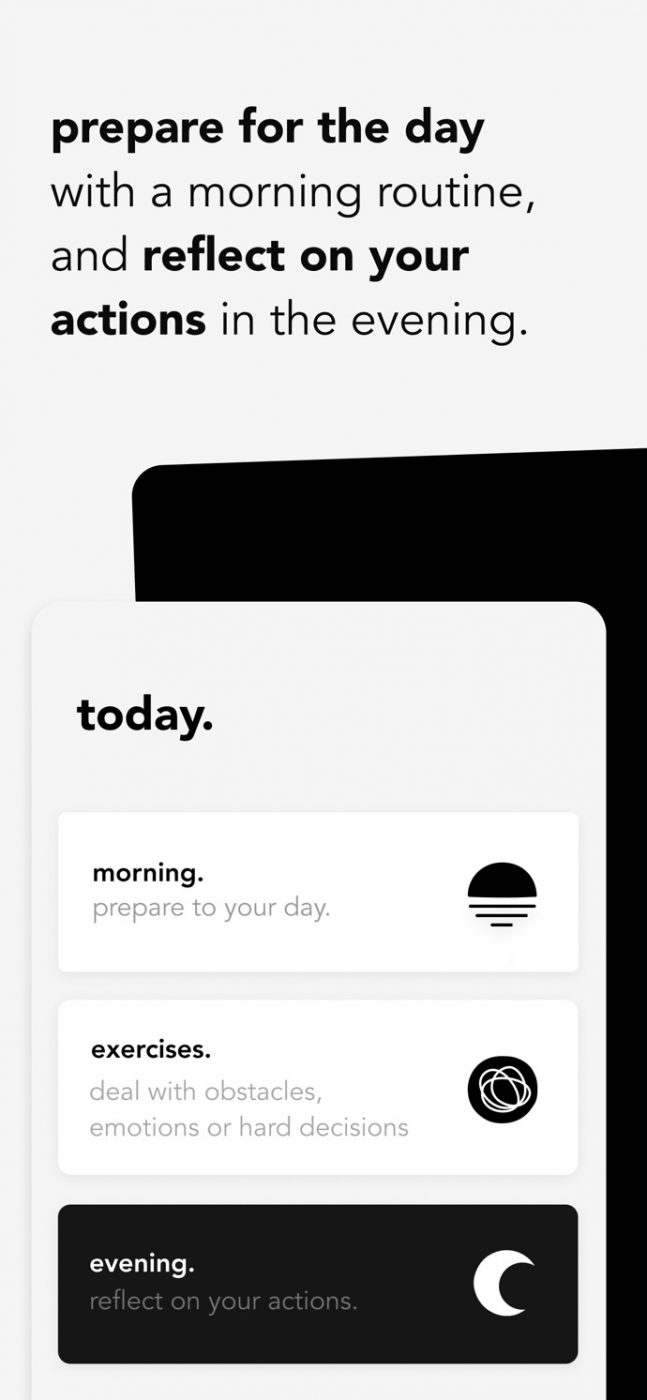 Созданное с их помощью мобильное приложение Stoic утром и вечером задает пару вопросов, которые подталкивают вас к более глубокому понимаю себя и, как следствие, к росту. Суть сервиса, как ее описывает CEO, не в том, чтобы человек чувствовал радость, а в том, чтобы он понял, почему он чувствует сейчас то, что он чувствует.