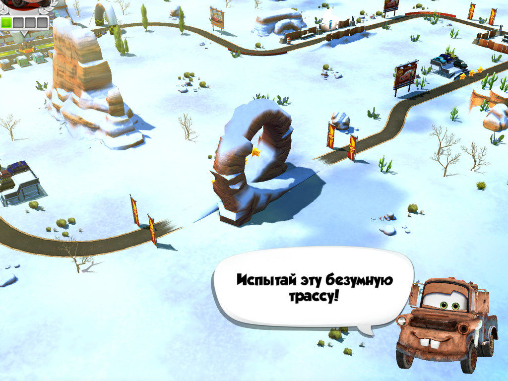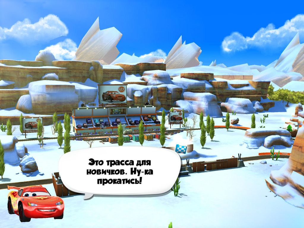 По ходу игры пользователь открывает доступ к 20 персонажам из франшизы «Тачек», включая не только друзей, но и соперников Молнии Маккуина. Кстати, зимнее обновление игры добавляет ледяную гоночную трассу в России и «главного Шумахера всея Руси» Петра Гонкина, а также кремлевские куранты, собор Василия Блаженного и другие приятные русскому человеку объекты.