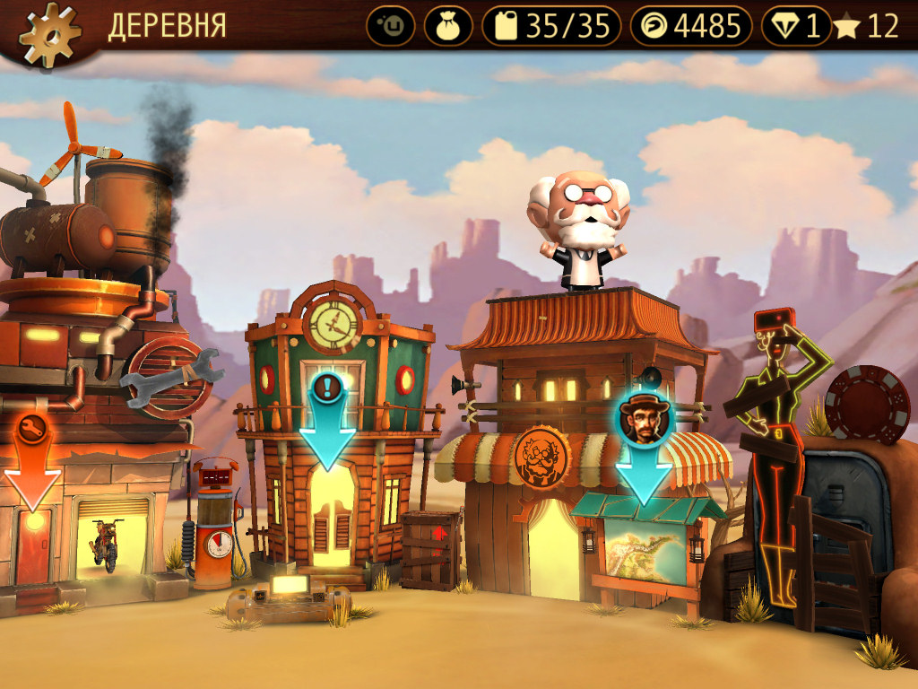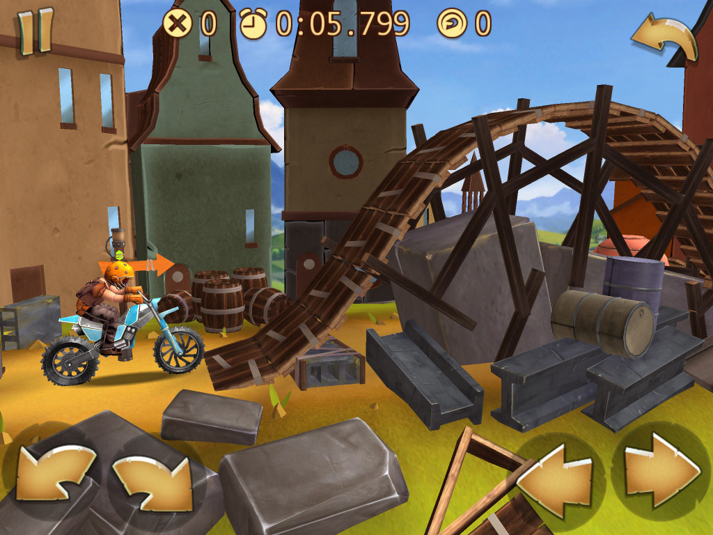 Радует и сюжет игры. Если описать вкратце, то получится «упал, очнулся, гипс!». Шустрый мотоциклист во время очередного героического триала попал под каменный обвал, откуда его вытащили жители одной деревушки. Теперь он вовсю раскатывает по округе, исследуя загадочный мир и соревнуясь с другими мотоциклистами. «Первому парню на деревне» активно помогают местные жители, постоянно придумывая для него новые задания и сочиняя истории о каких-то загадочных артефактах. Наш герой готов поверить в любые сказки, лишь бы разъезжать на своем любимом «железном коне» и иметь возможность его модернизировать. Вот на последнее ему вообще грех жаловаться, ведь апгрейд можно делать для различных частей мотоцикла – рулевой системы, колес, двигателя и рамы.