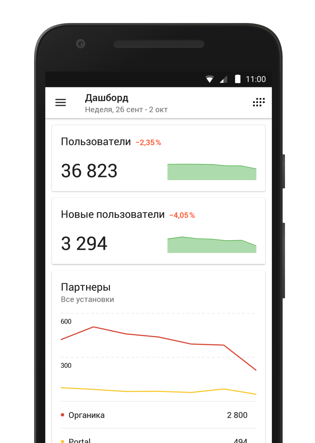 - Настраиваемый дашборд. Самые необходимые метрики можно вывести на дашборд. Вы увидите их сразу после открытия приложения.