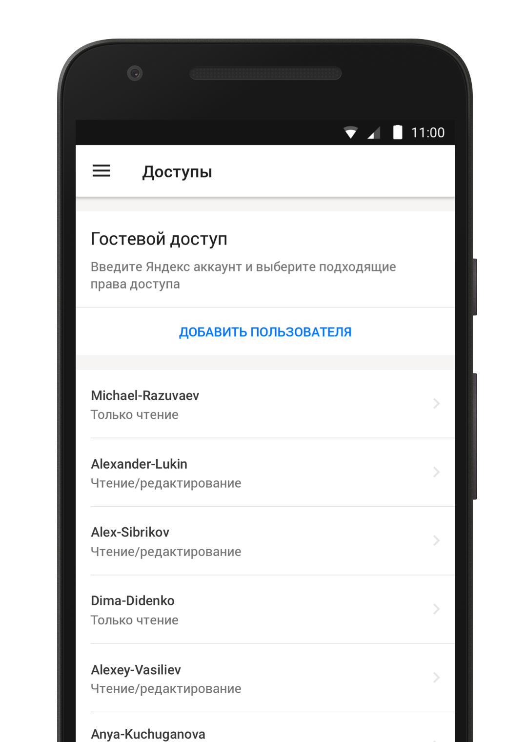- Управление гостевым доступом. Дать доступ к приложению коллеге или рекламному партнёру можно оперативно, достав смартфон из кармана. В этом же меню видны доступы, выданные ранее. Их можно отредактировать или отозвать.