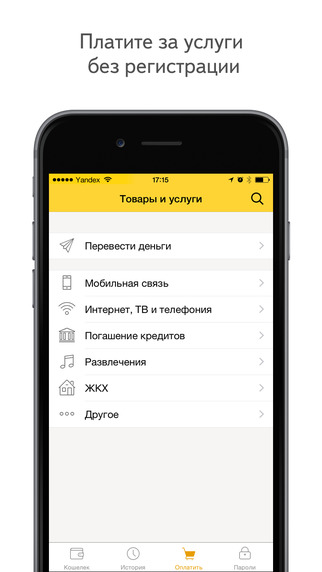 В Яндекс.Деньгах для iOS теперь можно платить без регистрации