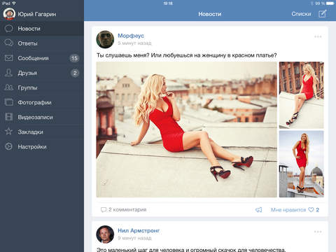 Сегодня команда социальной сети ВКонтакте выпустила новые приложения для iOS — для iPhone и iPad. Оба приложения обзавелись множеством новых функций. Так, в приложении для iPhone были расширены возможности отправки стикеров, появились новые функции для работы с профилями и стенами, а также были добавлены новые возможности поиска и добавления в друзья других пользователей. Обновление VK App для iPad вышло не менее легендарным: совершенно новый дизайн и полная адаптация под iOS 8, все недавние ключевые обновления на сайте и более сотни других различных функций и изменений были добавлены в новую версию приложения.