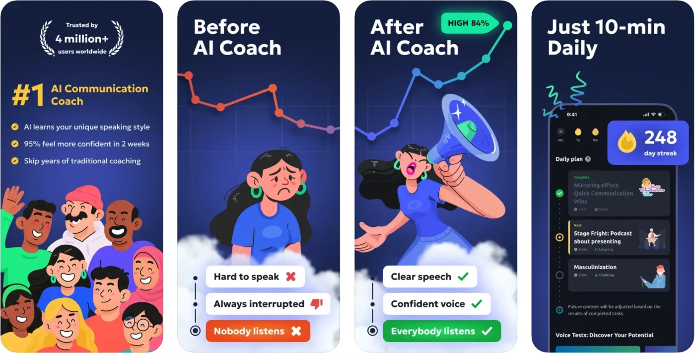 Vocal Image, имея интерактивную библиотеку, включающую скороговорки, дыхательные упражнения и советы по жестам, также всё больше опирается на искусственный интеллект для предоставления автоматической обратной связи и персонализированных советов, во многом благодаря приходу соучредителя и технического директора Николая Королёва, отметила Логойка.
