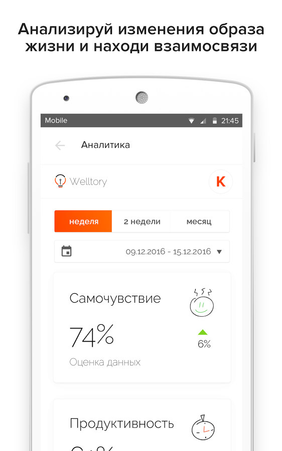 Приложение Welltory, трекер энергии и стресса для трудоголиков, с 10 февраля теперь доступно и в Google Play для всех желающих.