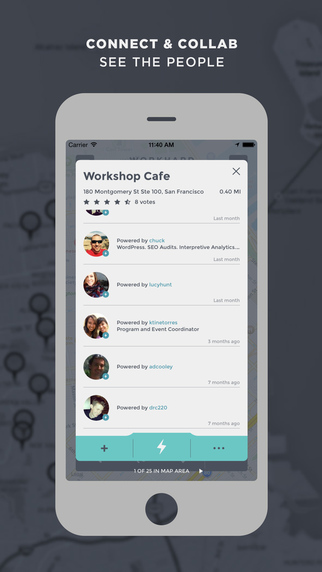 WHA (Work Hard Anywhere) – приложение для поиска места для работы. Речь тут идет не о вакансиях, а о физическом месте, где вы можете сесть и поработать над своим проектом. Пользователи приложения оценивают скорость работы Интернета, доступное место, наличие розеток и тому подобные параметры, а вы можете посмотреть, какие заведения есть в округе, и использовать их для работы.