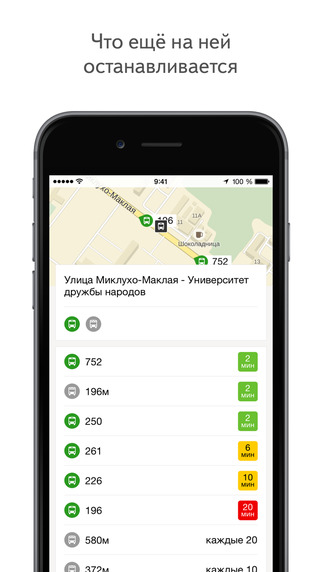 Помимо автобусов, троллейбусов и трамваев, Яндекс.Транспорт сообщает о перемещениях маршруток «Автолайн» и автобусов ГУП «Мострансавто» в Москве и городах Московской области. Приложение пригодится и в поездках по стране: в нём собраны справочные данные о транспорте более чем сорока российских городов.