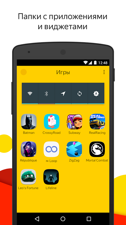 Даже если на смартфоне сотни приложений, Yandex Launcher разложит всё по полочкам: он умеет сортировать приложения по категориям, а их значки — по цветам. Это пригодится, если название приложения забылось, а запомнился лишь цвет иконки. Все приложения из одной категории — скажем, «Игры» — можно собрать в папку и поместить её на домашний экран. Если поставить на телефон ещё одну игру, она добавится в папку автоматически.