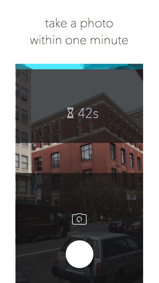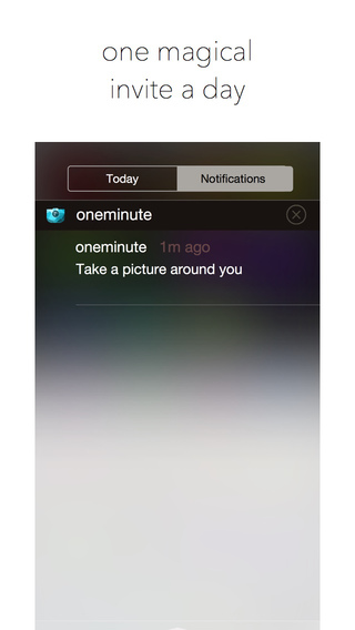 Приложение Oneminute в течение дня в случайное время посылает пуш-уведомления всем пользователям с просьбой достать телефон и за 60 секунд успеть сфотографировать то, что вокруг.