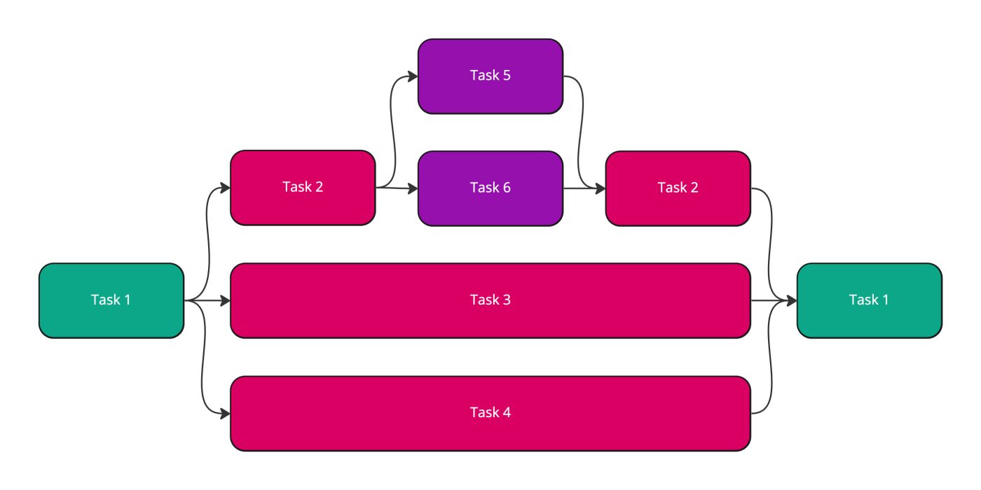- Родительская задача ждет завершения дочерних задач, прежде чем продолжить работу.