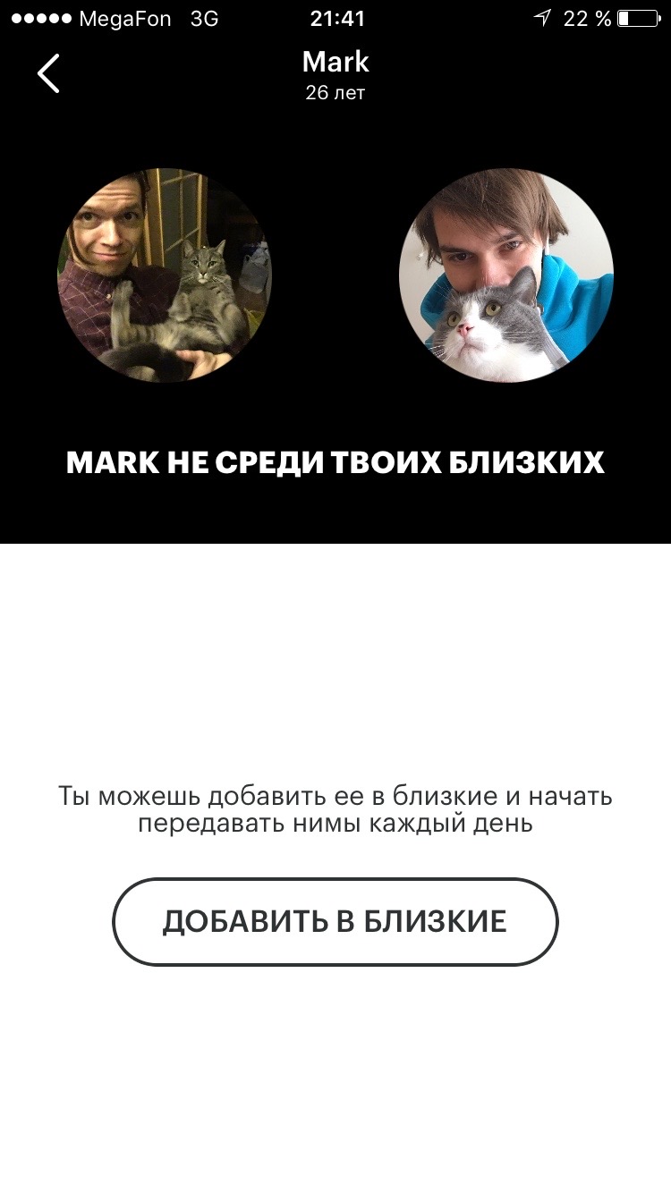 Наверху есть выбор из двух сегментов: «Рядом» и «Близкие». Близких у меня не было (звучит печально), и я никого не нашёл. Хотелось найти хоть каких-нибудь друзей, чтоб за что-то зацепиться. Но здесь их нет. А без друзей в незнакомом приложении грустно, одиноко и даже страшно. Зато есть много ботов и проституток.