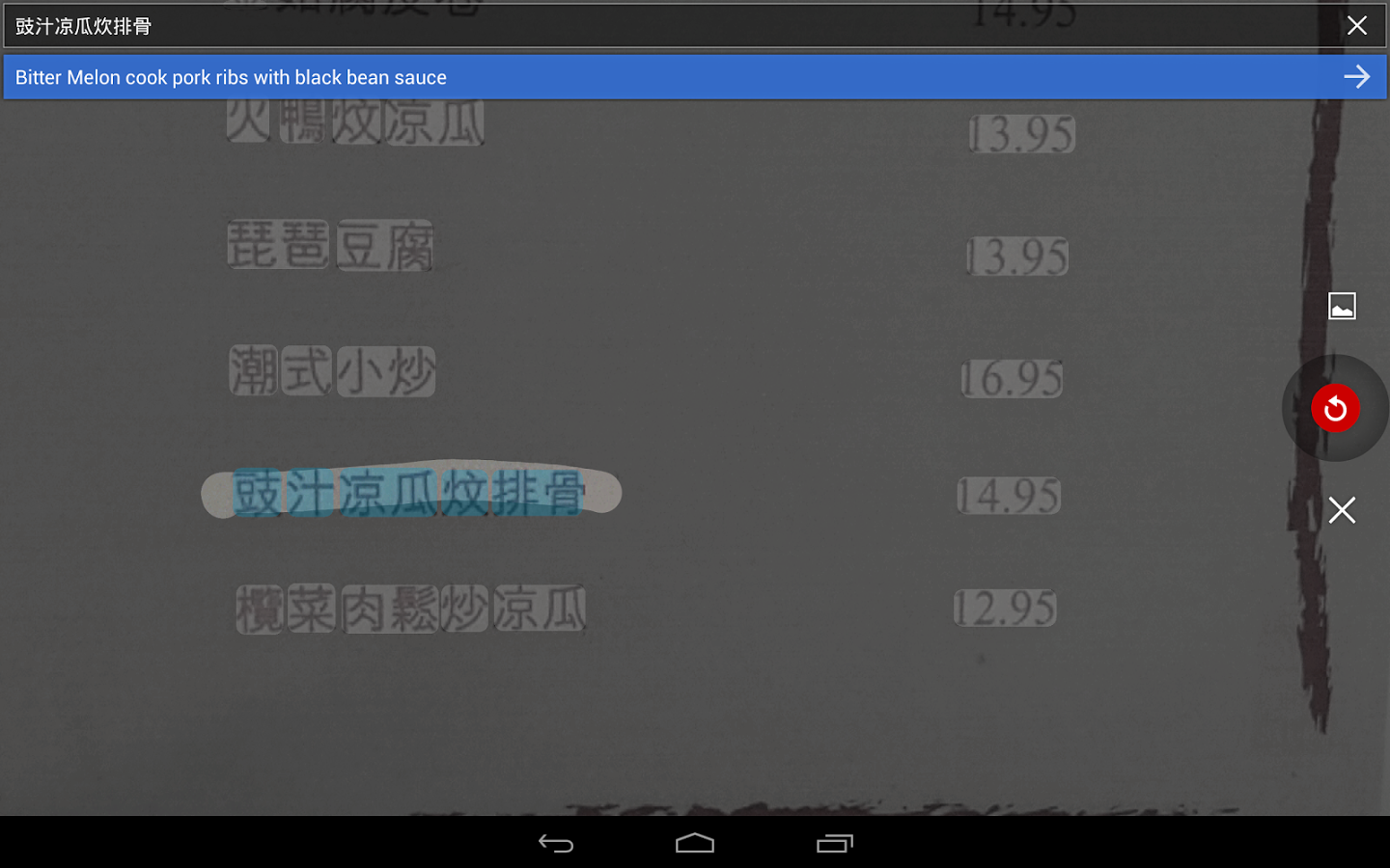 Одно из самый популярных приложений в Google Play. Переводчик по фото Google умеет не только распознавать текст на фото (что делает довольно неплохо), но и позволяет пользователю работать с обычным переводчиком. Приложение можно использовать без подключения к интернету, при скачивании дополнительных языковых пакетов. Кроме того, есть функция перевода SMS, рукописного текста (можно даже рисовать иероглифы) и распознавания речи. В фото-переводчике заложена возможность воспринимать не только базовые языки, но и такие, как греческий, венгерский и индонезийский. Грамотный перевод последних языков занимает значительно больше времени, поэтому лучше использовать его в случае, если в послании содержится часто употребимая информация, встречающаяся в местах паломничества туристов и в бытовом окружении. Кроме самого перевода, программа также выводит пользователю воспринятый текст и его транскрипцию. Из пока недоработанных моментов можно отметить небольшое смещение некоторых слов текста при сканировании примерно на строку. Также странным показалось, что если заблокировать экран после выведенного перевода, а затем снова вернуть телефон в рабочее состояние, то результат перевода будет утерян и придется проходить процесс заново.