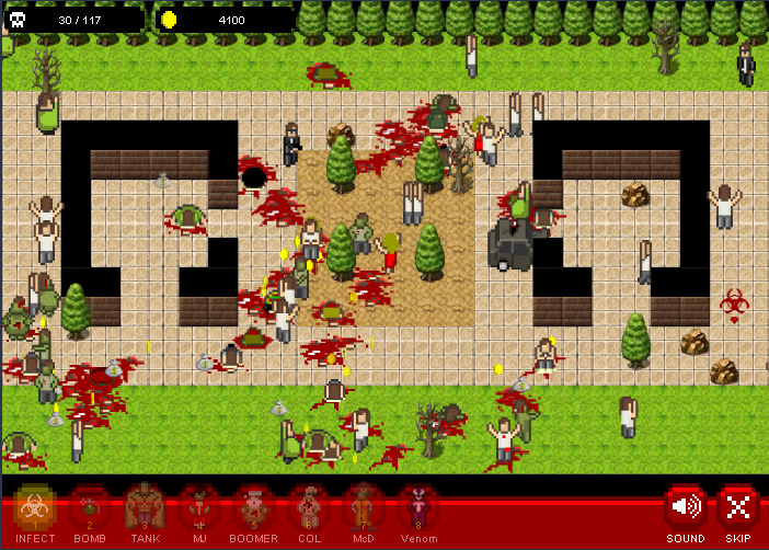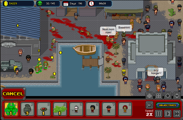 Хороший пример взят из нашей игры Infectonator. Изначально мы планировали, что это будет большая игра-симулятор зомби-апокалипсиса с процедурной географической картой, бла-бла-бла… Поскольку в то время это была такая амбициозная игра, мы разбили ее на несколько этапов: