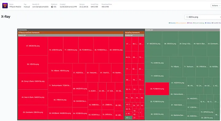 TPBank iOS Bundle содержит ресурсы для iPad. Это связано с тем, что изображения настроены как универсальные. Мы можем изменить принадлежность этих изображений на iPad, а Apple поможет нам удалить их из приложения для iOS (App Thinning). Это поможет уменьшить размер iOS-приложения на 20 МБ.
