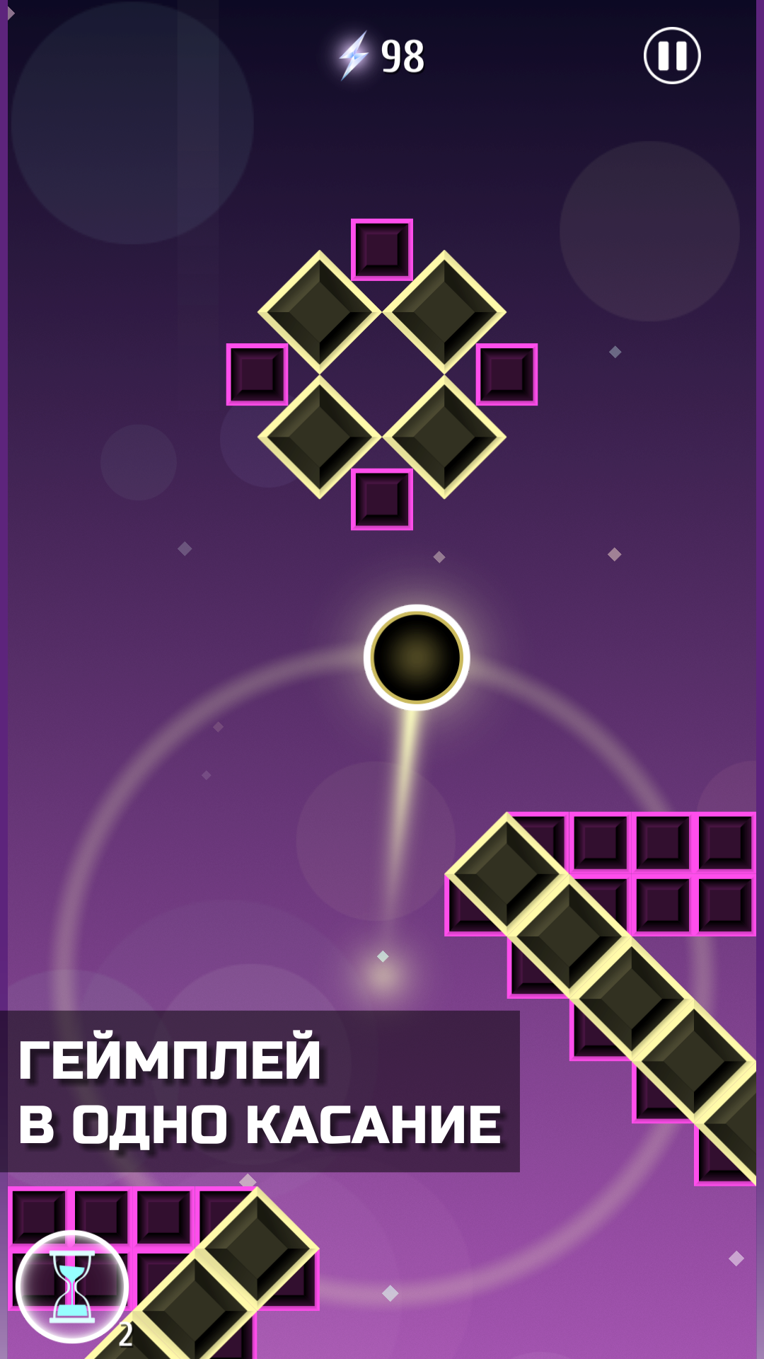На то, чтобы сменить направление вращения (другими словами — на каждое касание) требуется 1 заряд. Уровень вы начинаете, имея 100 зарядов. Цель — истратить как можно меньше зарядов за уровень. То есть нельзя бездумно тыкать по экрану, нужно просчитывать траекторию и использовать заряды с умом.