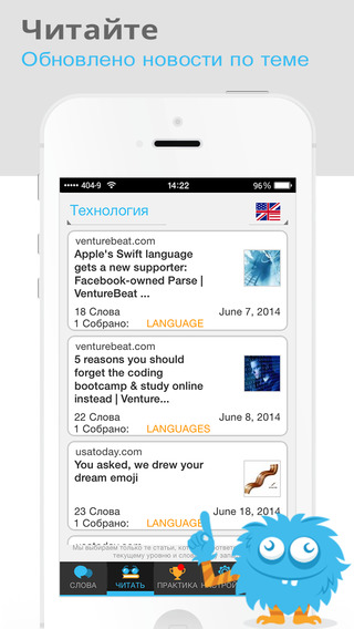 Учите английский, читая текущие новости на своем мобильном устройстве и нажимая на незнакомые слова. Умный словарь Lingua.ly представляет перевод словарного запаса, который вы хотите изучить. Затем приложение создает индивидуальные игры и дидактические карточки, чтобы помочь вам запомнить незнакомые слова. Веселый и эффективный способ изучения языка.