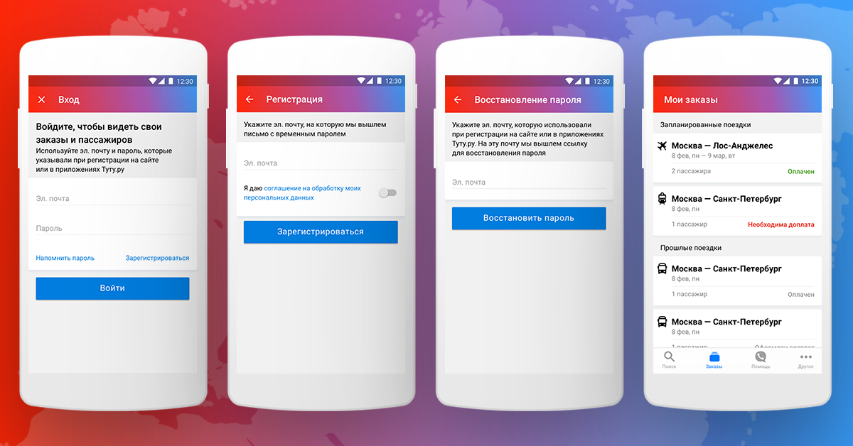 Авторизация в приложении позволяет просматривать статусы и детальную информацию по заказам, совершенным пользователем не только в приложении, но и на сайте или в других приложениях Туту, в том числе оформлять возврат или скачивать билет.