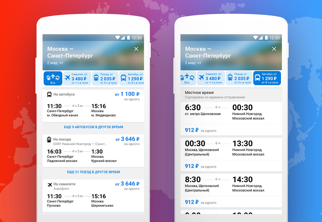 В Tutu.ru с самого начала были отдельные приложения для разных видов транспорта: для поиска и покупки авиа, железнодорожных и автобусных билетов. Нам требовалось объединить всю функциональность в одном приложении, дать путешественникам максимум пользы, чтобы пользователь в одном месте сразу смог увидеть, сравнить и купить билеты на любой из трех видов транспорта.