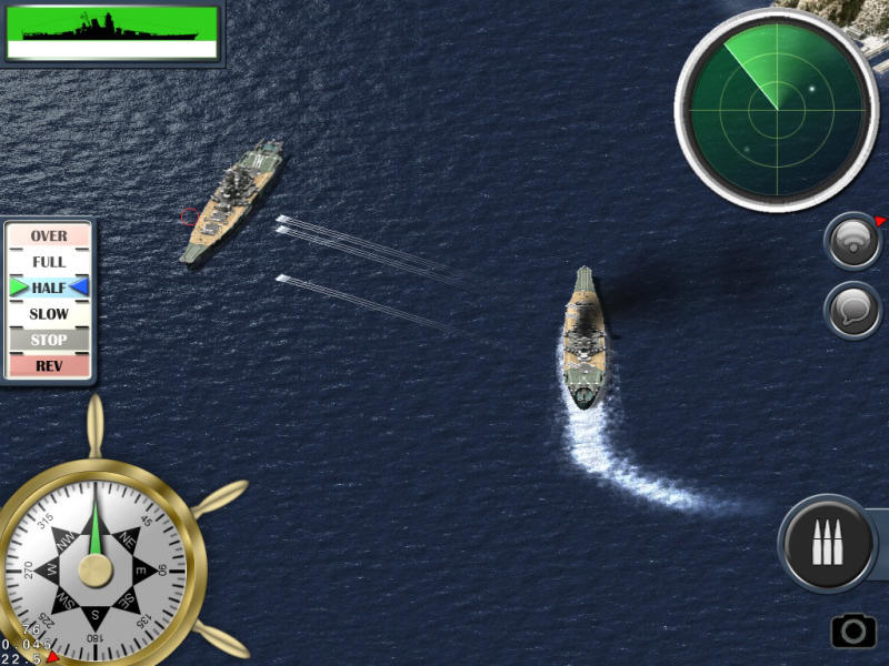 Помимо этого в игре уникальное управление, которое появилось не сразу — проходило несколько стадий. Сначала огонь по судам велся просто нажатием по точке, потом мы поняли, что пальцы закрывают экран и игра превращается… в «руку на экране». Постепенно пришли к выделению цели и тактической стрельбе. Команда потратила приличное количество времени даже на вращающийся штурвал. Раньше крутился и телеграф, но мы решили от этого отказаться.