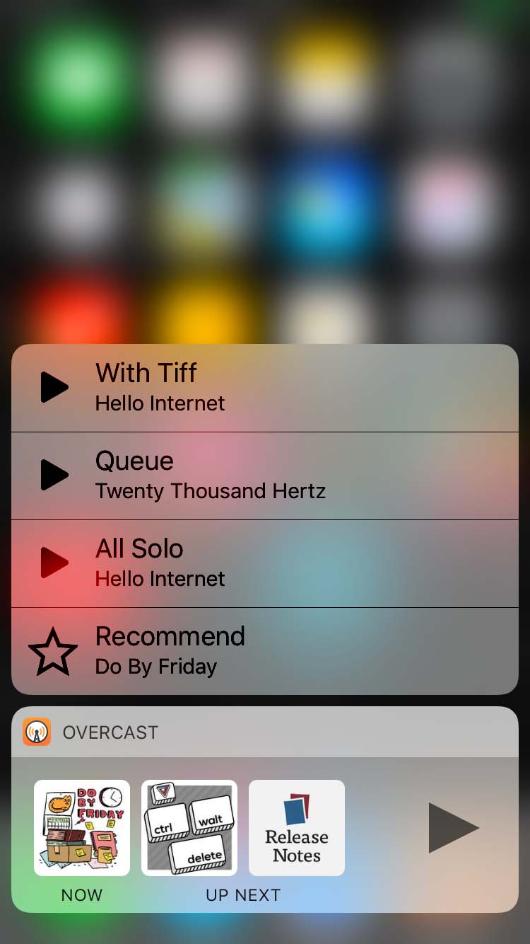 Новая карточка с информацией об эпизоде ведет себя как все другие карточки в Overcast 3: быстро выдвигается вверх, а потом просто убирается свайпом вниз в любой точке. Ее также можно посмотреть через 3D Touch и свайпнуть вверх для быстрых действий.