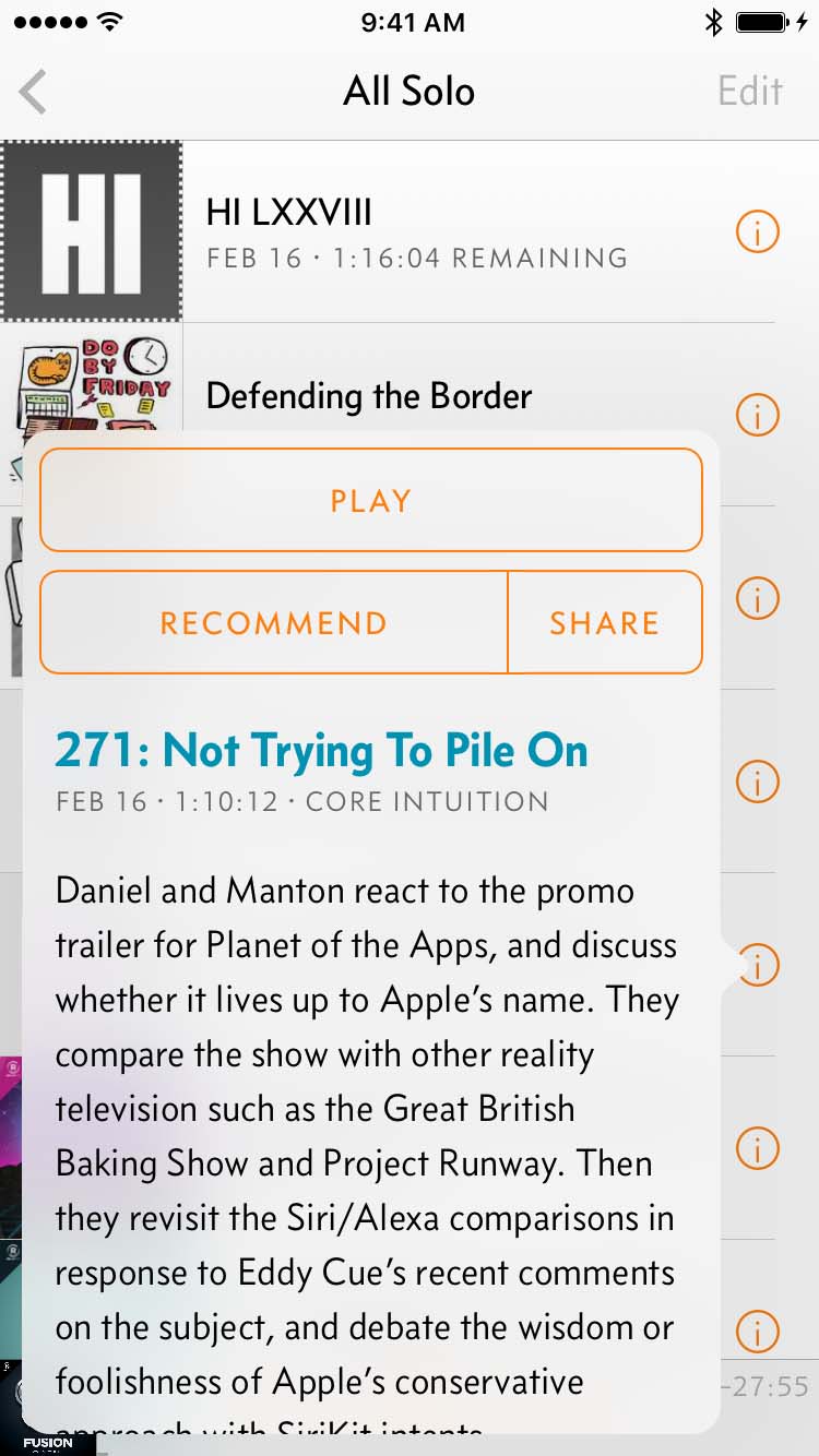 Я также переделал и сам экран Now Playing. Старый показывал заметки об эпизоде в скрытой зоне со скроллингом – вам надо было свайпнуть обложку, чтобы добраться до текста, что понимало относительно мало людей.