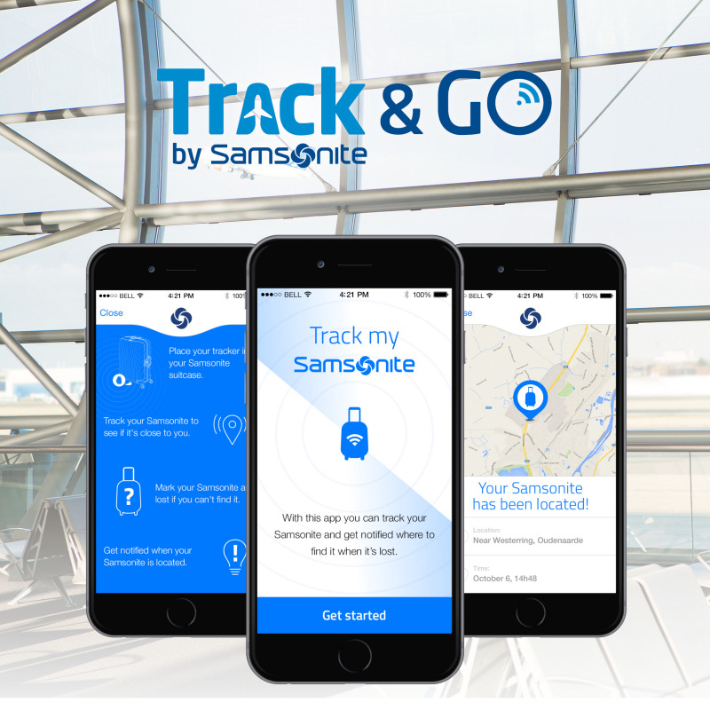 Bluetooth маячок, спроектированный и изготовленный Accent Systems, будет встроен в чемоданы Track&Go. Такой багаж необходимо зарегистрировать в приложении Travlr by Samsonite, разработанном совместно с агентством In The Pocket и доступном для бесплатного скачивания. Приложение Travlr by Samsonite было запущено в сентябре 2015 года, чтобы путешественники могли отслеживать рейсы, а также получать советы и напоминания во время своих поездок. Функция Track&Go в скором времени будет интегрирована в приложение, позволяя проверять расположение чемодана на расстоянии 70 метров, а также получать уведомления в случае, если чемодан будет перемещен. Если чемодан потерялся, владельцу следует пометить его в приложении как «утерянный». После этого приложение Travlr by Samsonite начнет поиск по базе пользователей, чтобы помочь владельцу найти свой багаж. Когда другой пользователь находится в радиусе 70 метров от утерянного чемодана, приложение улавливает EID сигнал и отправляет уведомление с информацией о местоположении и времени получения сигнала владельцу багажа. Все уведомления и отслеживание бесплатны. Таким образом, благодаря пользователям приложения Travlr by Samsonite, Samsonite уменьшает стресс от самой насущной проблемы всех путешественников.