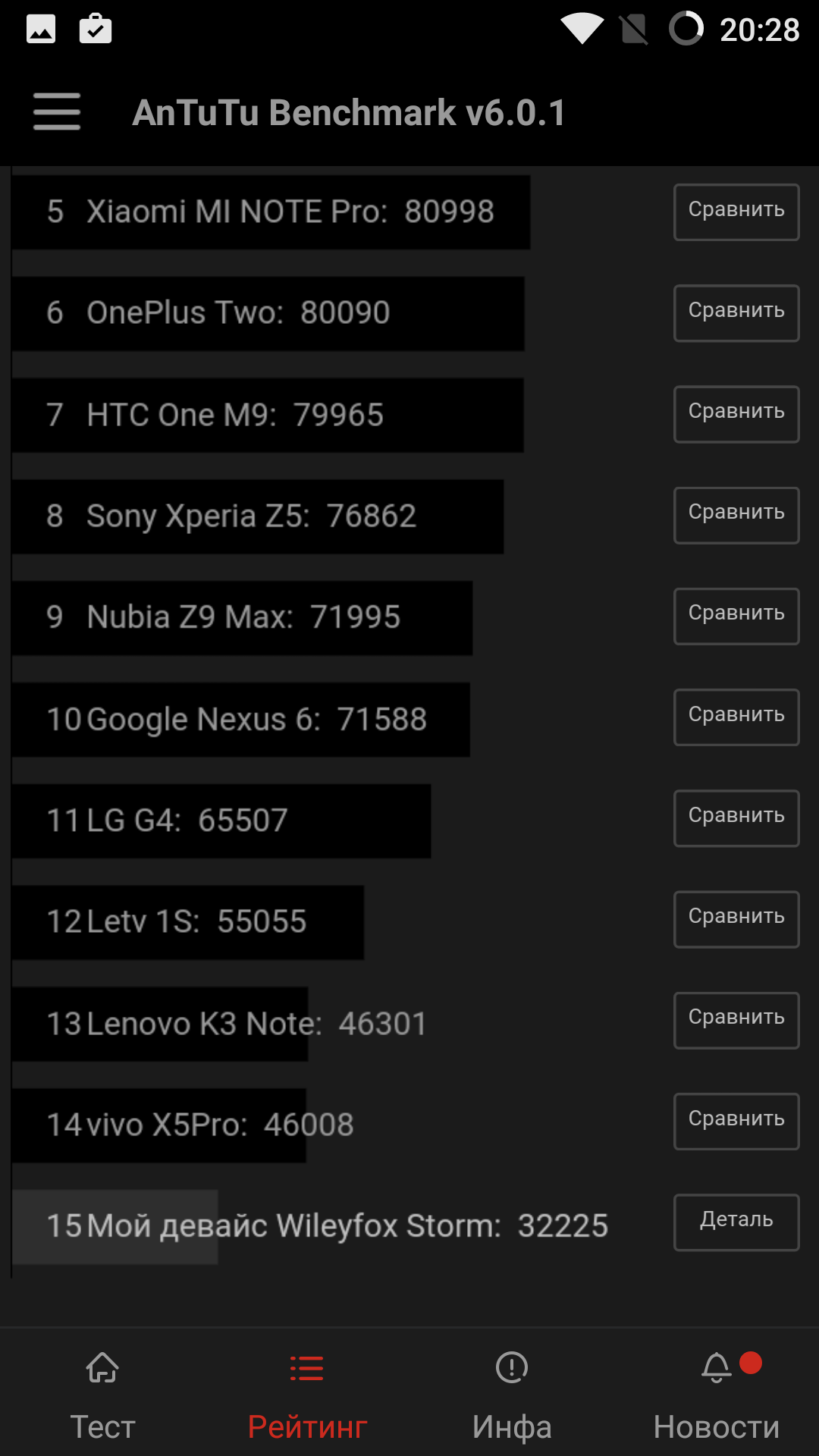 Если протестировать смартфон в AnTuTu Benchmark, то показатель, увы, средний – 32225, он отстает даже от чуть более старого Lenovo K3 Note. Но кто ожидал от весьма бюджетного устройства действительно флагманских высот? Разве что маркетологи «премиального» бренда, а среднестатистического пользователя эта производительность вполне устроит.