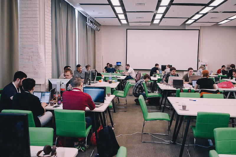 Кто-то провёл в офисе 2ГИС двое суток, кто-то уезжал домой поспать и возвращался обратно. Рабочая зона со столами, стульям и wi-fi, переговорная зона с диванами и флипчартами, 9 экспертов из разных сфер города (IT, маркетинг, журналистика, горсовет и предпринимательство) и менторы из 2ГИС, 15 кроватей и матрасов в спальной зоне от партнёра хакатона «МетроХостел», душ, трёхразовое горячее питание, 10 кг печенья и 7 кг кофе — всё это поспособствовало тому, что до конечной точки хакатона, финальной презентации, дошли все 29 проектов.