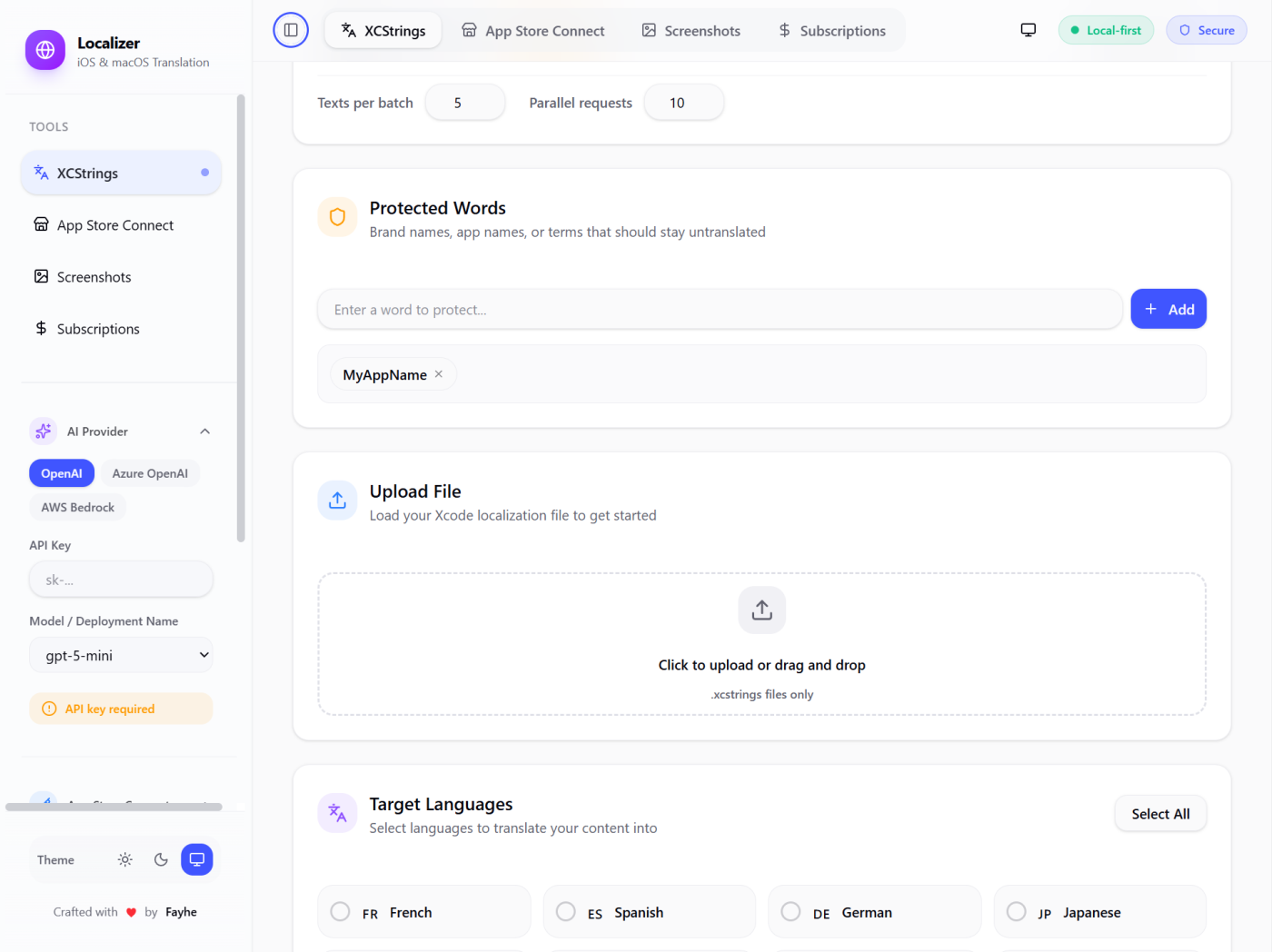 App Store Toolkit — набор из нескольких инструментов для локализации iOS-приложений. Есть локализация .xcstrings, настройка стоимости подписки для разных стран, перевод мета-данных и генератор скриншотов для App Store Connect. Все это с помощью ИИ и локальных сервисов.