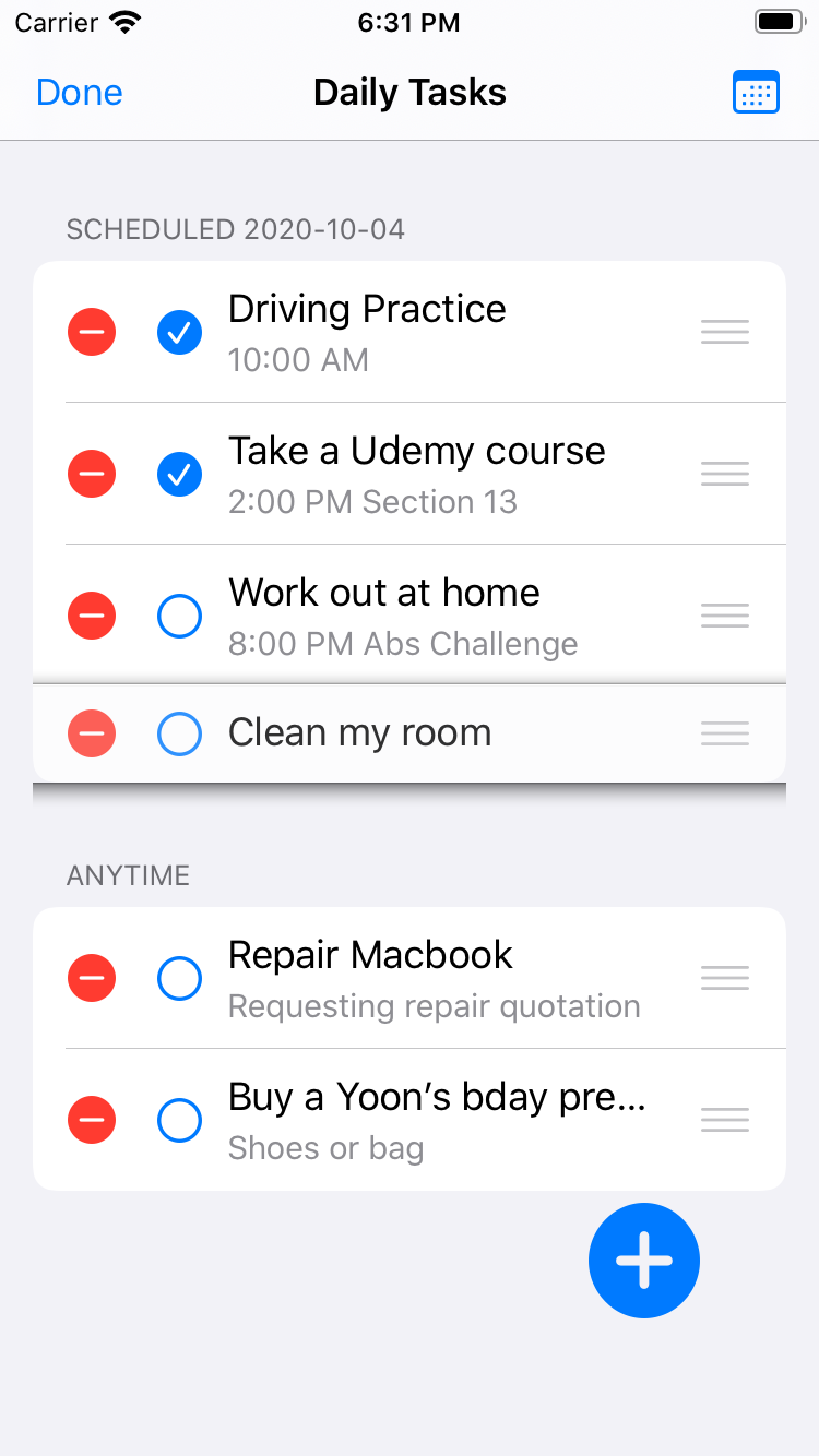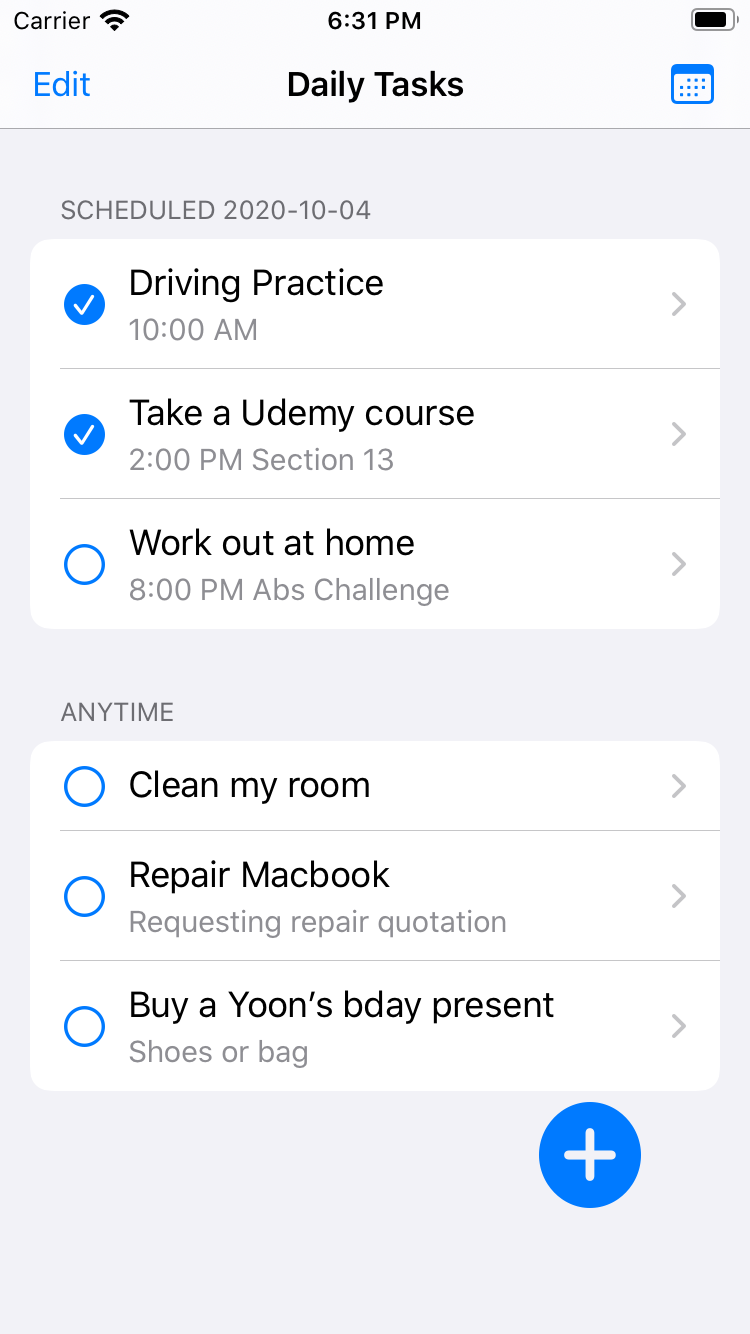 Daily Check — приложение со списком дел. Внутри MVVM, RxSwift, FSCalendar, тесты, навигация на протоколах.