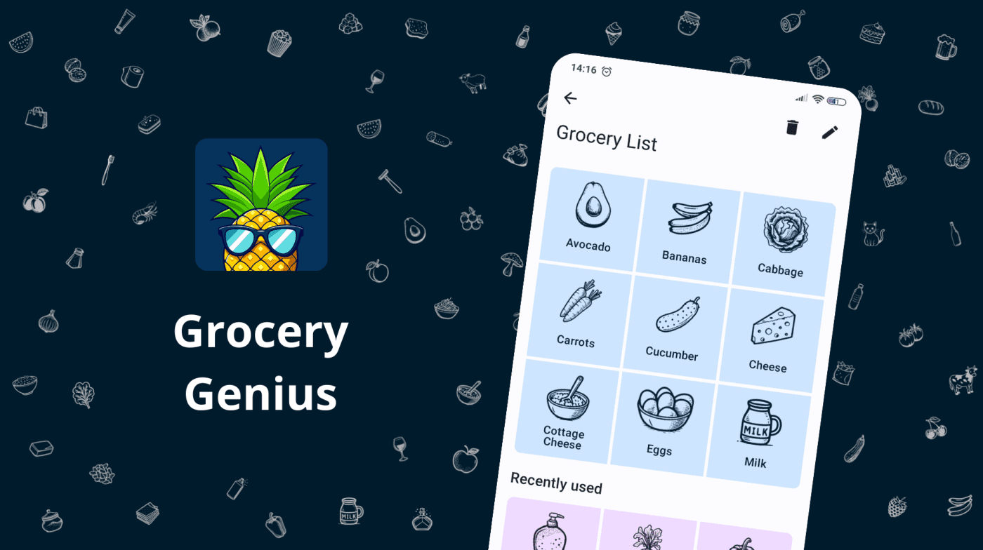 Grocery Genius — бесплатное, настраиваемое приложение для составления списков покупок с современным дизайном, функциями автозаполнения, возможностью работы офлайн и богатым функционалом.